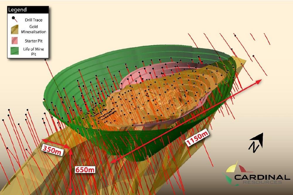 „Da sich der Großteil der angezeigten Mineralressource von der Oberfläche bis in eine vertikale Tiefe von 400 Metern erstreckt, gehen wir von einer Umwandlung von Mineralressourcen zu Erzreserven innerhalb eines einfachen, einzelnen, umfassenden Tagebaubetriebs mit einem äußerst niedrigen Abraumverhältnis von 1,2 bis 1 während der Lebensdauer der Mine als bevorzugte Abbaumethode aus.“