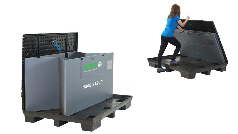 Großvolumige Teile lassen sich ab sofort effizienter transportieren und lagern. KTP erweitert das Produktsortiment um einen Transportbehälter im Maß 1800x1200x990 mm. Der einteilige Kunststoffbehälter mit der schnellen SmartFix Faltung verbindet großes Innenvolumen mit leichtem Handling und maximaler Volumenreduktion.