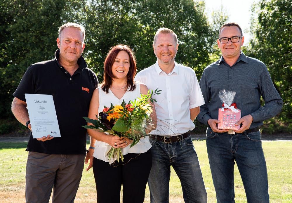 „Silke hat ihren Weg bei der Epsilon gemacht! Das hat sie ihrem Fachwissen zu verdanken, aber auch ihrer Loyalität und Verlässlichkeit!“, findet Epsilon-Geschäftsführer Peter Schwinn. Gemeinsam mit seinem geschäftsführendenKollegen Christian Krug dankte er der Jubilarin für die vergangenen zwei Jahrzehnte im Unternehmen.