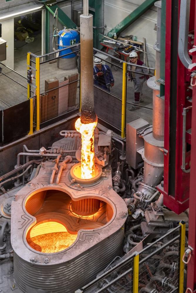 Der Pfannenofen wurde im Oxygenstahlwerk 2 von thyssenkrupp installiert und befindet sich im Produktionsprozess zwischen dem Konverter und der Strangießanlage. Das Aggregat wird im Rahmen der Sekundärmetallurgie zunächst zum Legieren und Aufheizen der Schmelze sowie zur Entschwefelung benötigt. „Wir haben mit dem Projekt Pfannenofen über diese Kernanforderungen hinaus aber noch deutlich mehr erreicht“, erläutert Thorsten Brand, Leiter der Stahlproduktion bei thyssenkrupp Steel. „Die Anlage trägt auch zur Kostenoptimierung und Steigerung der Prozesseffizienz im gesamten Stahlwerk bei. So können wir zukünftig die Kosten im Konverterbetrieb senken, indem wir höhere Schrotteinsätze ermöglichen, also den Produktionsprozess kostenorientiert flexibler machen. Da die Schmelze im Pfannenofen auf- bzw. nachgeheizt werden kann, sparen wir auch an der Feuerfestauskleidung im Konverter, weil wir die Abstichtemperatur absenken können. Aus demselben Grund sind wir in der Lage, die Nachblasquote im Konverter zu verringern. Schließlich werden wir unsere Direktabstichquote steigern können, weil es nun möglich ist, über digital vernetzte Daten die Schmelzen im Pfannenofen gezielt nachzujustieren. In Summe stellt das Projekt eine kostenoptimierte und technologische Fortentwicklung für das ganze Stahlwerk dar“, resümiert Brand.
