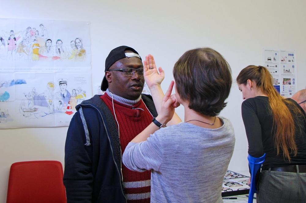 Mehrere Dolmetscher eilen an diesem Nachmittag von Raum zu Raum. Aber auch so klappt die Kommunikation zwischen den zwölf Studierenden und den Flüchtlingen. Ist gerade kein Dolmetscher frei, helfen andere Flüchtlinge beim Übersetzen ins Englische aus. Oder man verständigt sich mit Handzeichen. „Es ist toll, dass die Studierenden bereit sind, ihre Zeit und ihr Engagement einzubringen“, freut sich Sven Krieg von der LEA. „Denn die Flüchtlinge haben leider in den ersten 15 Monaten nach ihrer Ankunft nur ein geringes Recht auf medizinische Versorgung“, erklärt Krieg weiter.