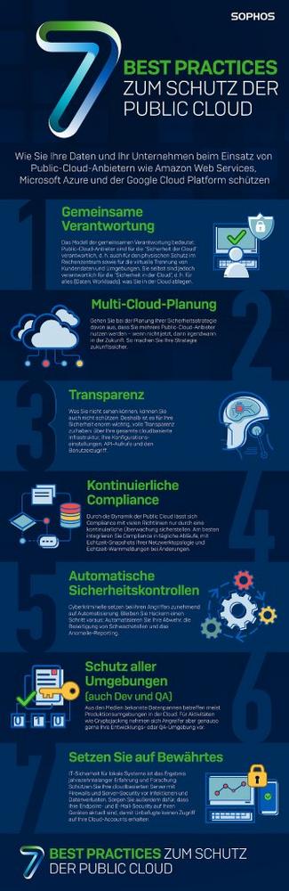 „Security in der Public Cloud ist möglich und Unternehmen sollten die existierenden Möglichkeiten sowohl der Cloud-Anbieter als auch der speziellen Security-Lösungen nutzen. Erst dann können die Vorteile der Public Cloud in vollem Umfang und vor allem sicher genutzt werden“, erklärt Michael Veit, Technology Evangelist bei Sophos