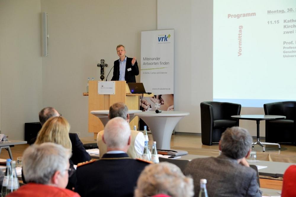 In seinem Impuls zum Einstieg ermutigte der Münsteraner Historiker Thomas Großbölting die Kirche, die Situation realistisch anzunehmen und beherzt an Veränderungen zu arbeiten. „Die Kirchen sind plural und es führt kein Weg in vergangene Geschlossenheit zurück“. Die Geschichte habe aber vielfach gezeigt, dass sich Kirche neuen Situationen erfolgreich stellen könne. Pater Klaus Mertes SJ bezeichnete es als die größte Gefahr für die Kirche, dem Relevanzverlust ihrer Stimme in der Gesellschaft mit Verzweiflung zu begegnen. Von Verzweiflung gelenkte Versuche, Relevanz zurückzugewinnen führten nur zu größerem Relevanzverlust. Insbesondere dem Phänomen der Religionslosigkeit könne die Kirche nur mit einer neuen Weise des Hörens begegnen, die bereit sei, auf das zu antworten, was die Menschen tatsächlich fragten. „Der Relevanzverlust fordert die Kirche heraus, sich aus der narzisstischen Selbstbezogenheit zu lösen.“