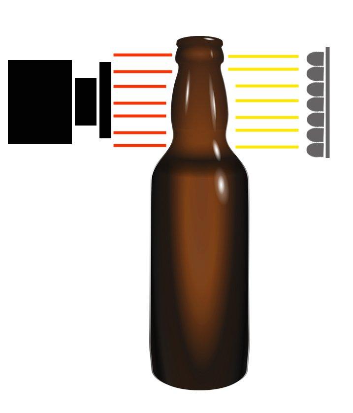 Der Neck Inspector prüft Flaschen auf beschädigte Neck-Ringe oder Mündungsgewinde. Die Flaschen altern, sie werden spröde und anfällig mögliche Ausbrüche am Neck-Ring, abgeschabte oder beschädigte Mündungs-Gewinde.