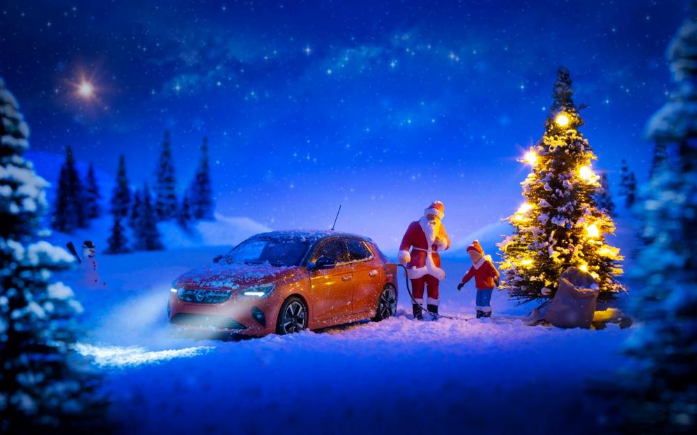 „Am Weihnachtsbaum die Lichter brennen …“ Der neue Opel Corsa-e ist für so manche Überraschung gut. Als Modellauto sorgt er in der Vorweihnachtszeit für echte Lichtblicke. „Energie“ lautet das Zauberwort – und davon hat der batterie-elektrische Corsa-e reichlich. So viel, dass er sogar die Lichter am festlich geschmückten Tannenbaum zum Leuchten bringt. Der Weihnachtsmann weiß eben, worauf er sich beim Ausfahren der Geschenke verlassen kann. Rentiere waren gestern, der neue Corsa-e im Miniaturformat ist das Gefährt der Wahl. Träumen ausdrücklich erlaubt!