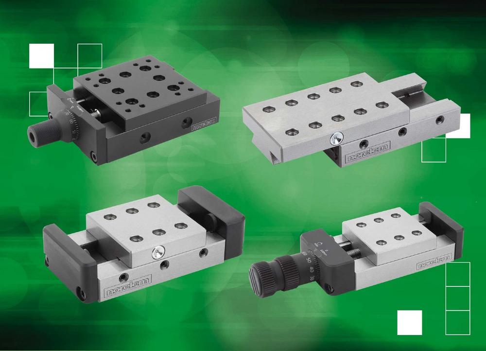 Vorhang auf für die neuen Schlittenführungen von norelem, die sich unter anderem durch ihr integriertes Einstellsystem auszeichnen – ein modulares Lochbild mit integrierten Befestigungslöchern macht eine erneute Bearbeitung durch den Kunden überflüssig. Die schnelle Kopplung eröffnet unendliche Montagemöglichkeiten, wobei stets für eine optimale Genauigkeit gesorgt ist: Dafür sorgt die hochpräzise Geometrie mit der skalierten Einstellschraube und maßgeschliffenen Oberflächen. Die besondere Langlebigkeit der Schlittenführung ist unter anderem durch die hoch belastbare, robuste Konstruktion gewährleistet, die auch raue Umgebungsbedingungen widersteht. Durch die integrierten Schmiernippel ist bei Bedarf ein nachschmieren der Führungen jederzeit möglich und reduziert so den Wartungsaufwand auf ein Minimum. Dank dieser Eigenschaften finden die Schlittenführungen von norelem Anwendung im Maschinen-, Vorrichtungs- und Messgerätebau sowie in der optischen und feinmechanischen Industrie.