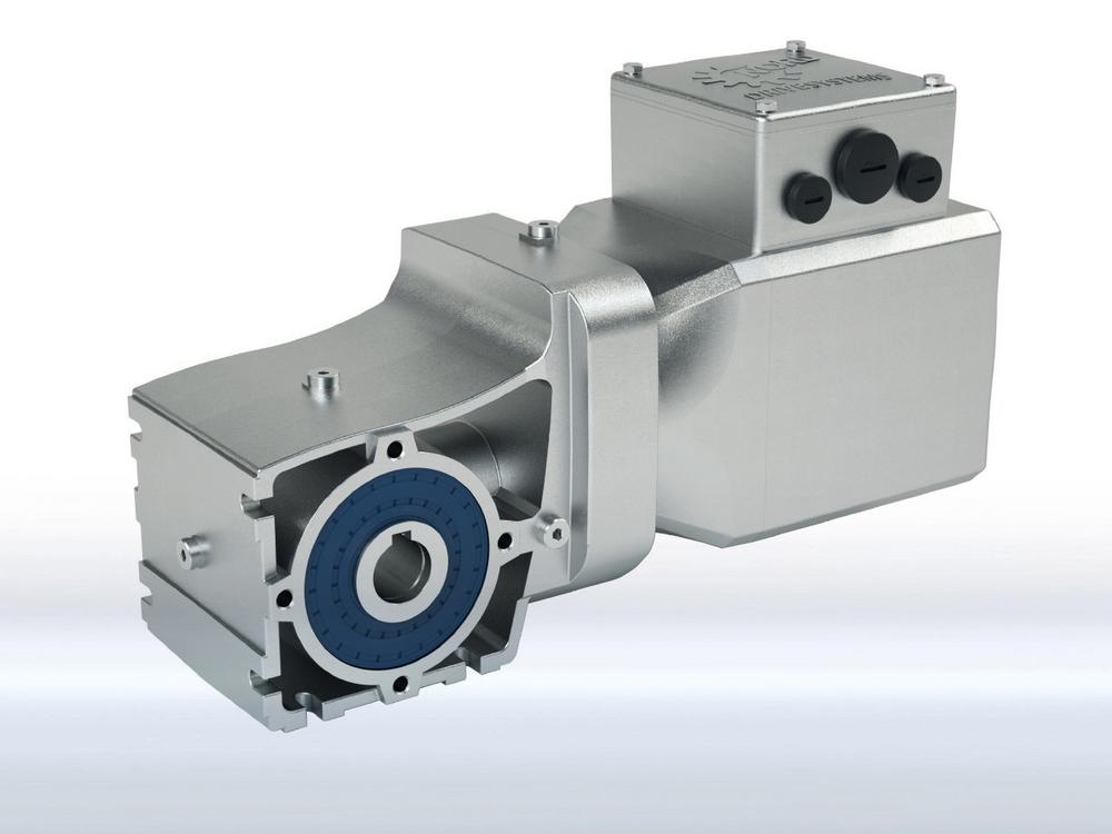 Der energieeffiziente Permanentmagnet-Synchronmotor der neusten Generation reduziert die Verluste im Vergleich mit der aktuellen IE4-Baureihe noch einmal deutlich. Der unbelüftete Glattmotor erreicht seinen hohen Wirkungsgrad, der teilweise deutlich oberhalb der Effizienzklasse IE5 liegt, über einen breiten Drehmomentbereich und ist damit optimal für den wirtschaftlichen Betrieb im Teillastbereich geeignet. Der kompakte IE5+ Motor bietet eine hohe Leistungsdichte bei geringem Bauraum und wird zuerst in einer Baugröße für den Leistungsbereich von 0,35 bis 1,1 kW mit einem Dauerdrehmoment von 1,6 bis 4,8 Nm und Drehzahlen von 0 bis 2.100 min-1 auf den Markt kommen. Es ist der Motordirektanbau sowie der NEMA- und IEC-Motoranbau verfügbar. Ein integrierter Drehgeber sowie eine integrierte mechanische Bremse sind optional verfügbar.