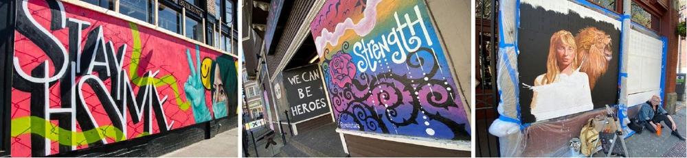 „Stay strong“, „we can be heroes” oder “Strength” – diese und viele weitere motivierende Schlagwörter finden sich momentan an zahlreichen Schaufenstern in Seattle wieder. Dies geschieht jedoch nicht ungewollt, sondern ist in der Smaragdstadt sogar erwünscht. Viele Geschäfte, die im Zuge des Lockdowns ihre Geschäfte schließen mussten, verpassten ihren Schaufenstern und Eingängen Sperrholzfassaden. Diesen eher eintönigen Anblick wollten viele Ladeninhaber jedoch nicht hinnehmen und riefen lokale Künstler dazu auf, den großflächigen „Leinwänden“ ihren persönlichen Stempel aufzudrücken. Nach kurzer Zeit entstand eine Art Kunstbewegung – eine Revolution gegen die Corona-Pandemie – die sich über die gesamte Metropole erstreckte. Heute erzählen Seattles Straßen in leuchtenden Farben von Stärke, Liebe und Hoffnung mit der Hauptbotschaft „Alles wird gut“.