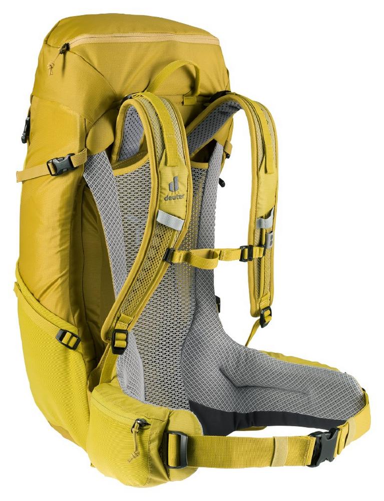 Neben den neuen nachhaltigen Materialien hat das Rückensystem der Futura Modelle ein Update bekommen. Das Tragesystem liegt näher am Packsack. Damit wird die Last nah und sicher am Körperschwerpunkt gehalten und das Tragen des Gepäcks erleichtert. Der leichte und funktionelle Wanderrucksack Futura (21 SL, 23, 25 SL, 27, 29 EL) mit Rundbogen-Zugang/Reißverschluss ist ideal für sportliche Tageswanderungen: Das Aircomfort Rückensystem ist komfortabel und sorgt mit dem neuen Mesh für maximale Belüftung am Rücken. Das bedeutet: bis zu 25 % weniger schwitzen und damit eine höhere Leistungsfähigkeit. Auch bei den etwas größeren Futura Modellen (24 SL, 26, 30 SL, 32 oder 34 EL) mit Deckelfach, die sich auch für Mehrtagestouren eignen, schwitzt der Träger dank des luftigen und komfortablen Netzrückensystems deutlich weniger.