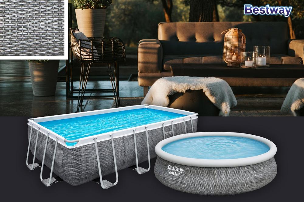 Trendstarkes Design in Rattan-Optik – Passend zum aktuellen Garten-Ambiente erscheint die Rattan-Poolvielfalt von Bestway in lichtgrau über schiefergrau bis hin schokobraun und Modelle in dezenter shabby-chic Optik. Das zeitlose Rattan-Design ist mit aktuellen Trendfarben im Gartenmöbel-Bereich perfekt abgestimmt.