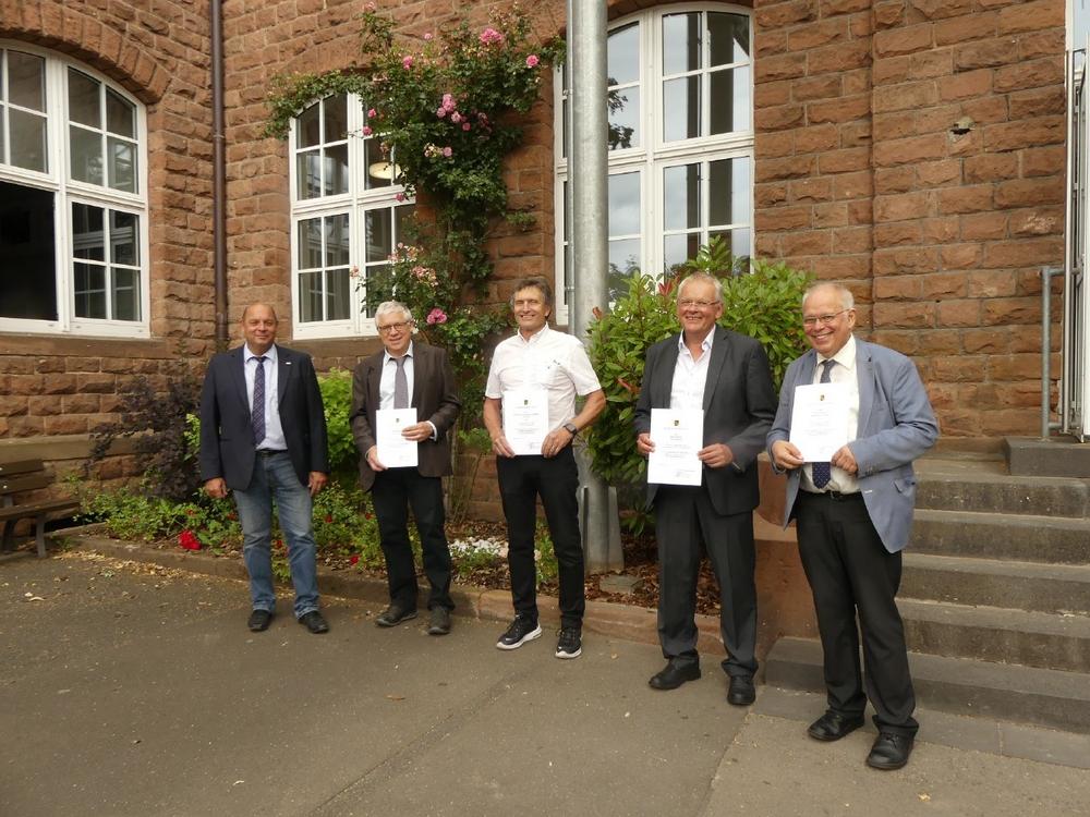 In den Ruhestand verabschiedete Hemmer fünf Kollegen und eine Kollegin: Rudi Schlosser war seit 1987 in der Tischlerabteilung tätig und außerdem Abteilungsleiter für die gestalterischen Berufe; der Zimmerer Karl Jung gehörte seit 1982 der Bauabteilung an und studierte mit den angehenden Zimmerern immer den Zimmermannsklatsch ein, der oft bei Festen aufgeführt wurde; Thomas Grüne war in der Malerabteilung beschäftigt, Hans-Georg Oertgen unterrichtete seit 1987 Deutsch, Ethik sowie Berufs- und Arbeitspädagogik, Dr. Manfred Bühler vermittelte seit 1993 Betriebswirtschaftslehre und Ursula Seitz war seit 1990 Lehrerin für Deutsch und Sozialkunde. „Sie alle können auf ein erfülltes Berufsleben zurückblicken und haben mitgeholfen, Tausenden von Schülerinnen und Schülern den Weg zu ebnen“, so Hemmer.