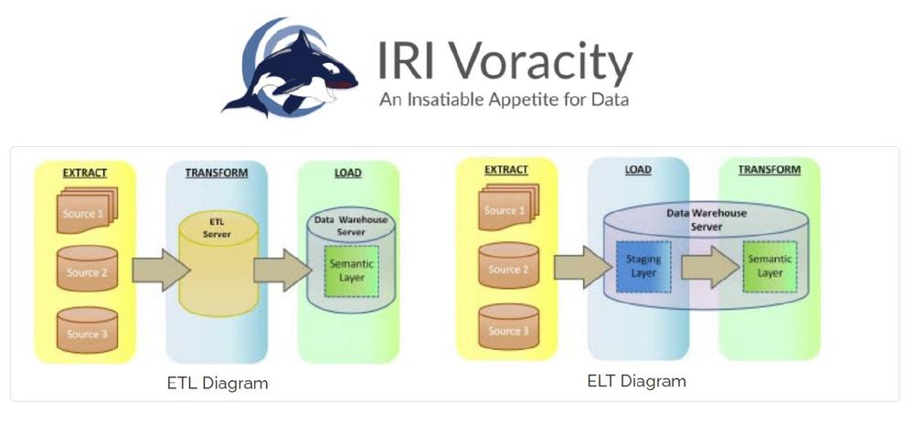 Aus diesen Gründen wurde IRI Voracity entwickelt, um Daten über das Programm CoSort SortCL in bestehende Dateisysteme oder Hadoop-Fabrics ohne Neucodierung zu integrieren. Voracity ist die einzige ETL-orientierte (aber auch ELT-unterstützende) Plattform, die beide Optionen für externe Datentransformationen bietet. Neben einem überlegenen Preis-Leistungs-Verhältnis bei der Datenbewegung und -manipulation beinhaltet Voracity: