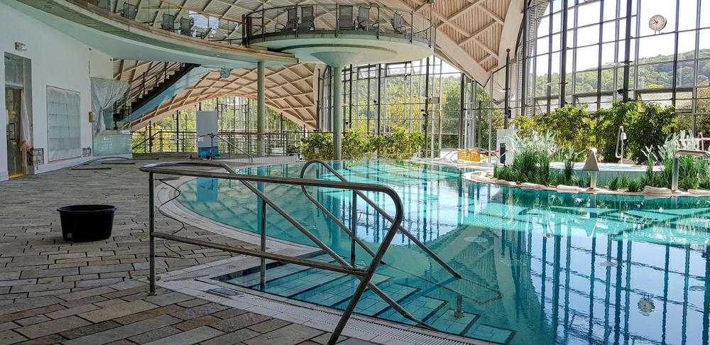Zusätzlich zum Fliesenaustausch wurden während der Schließzeit auch weitere Reparaturen und Instandhaltungsarbeiten durchgeführt. So wurden die Holzpodeste in der Therme mit einem Schutzanstrich versehen und die Fußbecken im Saunabereich erneuert. Des Weiteren bekam das Kneipp-Becken einen neuen Fußboden.