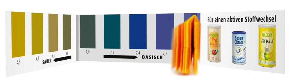 "Aufgrund des heutigen Lebenswandels, sind immer mehr Menschen von Übersäuerung betroffen", weiß Rudolf Keil, Gründer von MADENA sowie Fachapotheker für Gesundheits- und Ernährungsberatung. Treten eines oder mehrere der oben genannten Symptome auf, ist es ratsam ein Ungleichgewicht im Säure-Basen-Haushalt auszuschließen. Der nachfolgende, von MADENA entwickelte Test, lässt Tendenzen und einen eventuell weiteren Handlungsbedarf erkennen.