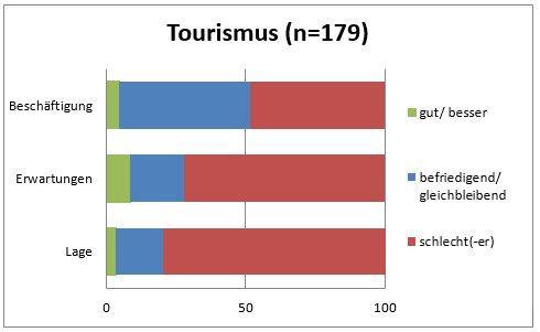Für die kommenden Monate erwarten nur rund neun Prozent der Unternehmen eine günstigere Geschäftsentwicklung. 19 Prozent der Unternehmen rechnen in den kommenden Monaten mit gleichbleibenden Geschäften. Jedoch befürchten sieben von zehn der befragten Unternehmen eine rückläufige Geschäftsentwicklung. Wimmers: „Darin spiegeln sich der Lockdown, aber auch die üblicherweise ruhigen Wintermonate in der Region wider. Es ist zurzeit fraglich, ob das Gastgewerbe während des Winters noch öffnen darf.  Reisen werden zurzeit von kaum jemandem unternommen. Damit darf auch die Reisebranche keine ausreichende Geschäftstätigkeit erwarten.“ Die Situation spiegelt sich dann auch in dem historisch niedrigen Geschäftsklimaindex im Tourismusgewerbe mit 29,3 Punkten, weit unterhalb des Niveaus der Gesamtwirtschaft im IHK-Bezirk (87,9), wider.