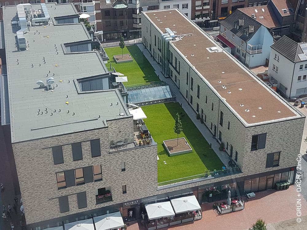 The Hertie building in Lünen is a good example of how, with a little bit of creativity and innovative ideas on the part of planners and others involved in the build, a completely new structure can emerge from an old and no longer contemporary property, without the need to completely demolish the old building. The play and sunbathing lawn, which can be used by all residents in the new “Hertie House”, is only one such example. In any case, we have quality of life here, right in the middle of the town. There is already a huge range of technical solutions available for implementing an innovative green vision for green roofing.