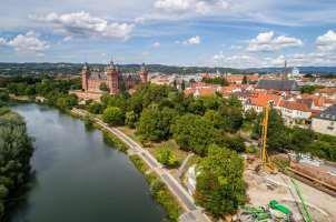Als ARGE Willigisbrücke arbeitet die Region Süd der BAUER Spezialtiefbau GmbH mit der Michel Bau GmbH aus Klingenberg zusammen. Auftraggeber ist das Tiefbauamt der Stadt Aschaffenburg. Die Spezialtiefbauarbeiten obliegen Bauer und werden voraussichtlich im Sommer 2021 abgeschlossen. Die Arbeiten umfassen dabei die Ausführung eines rückverankerten, wasserhemmenden Kastens zur Herstellung des Rohbaus. Im Einzelnen wird eine Baugrubenumschließung mittels überschnittener Pfahlwand im Schneckenortbetonverfahren (SOB) bis in ca. 24 m Tiefe ausgeführt sowie eine tiefliegende Hochdruckinjektionsdichtsohle (HDI) eingebracht. Zur Rückverankerung der Baugrubenumschließung werden teilweise rückbaubare Anker ausgeführt. Hier kommen erstmals in Deutschland sogenannte GFK-Anker zum Einsatz. Zusätzlich wird der Rohbau mithilfe einer Mikropfahlgründung gegen Auftrieb abgesichert.
