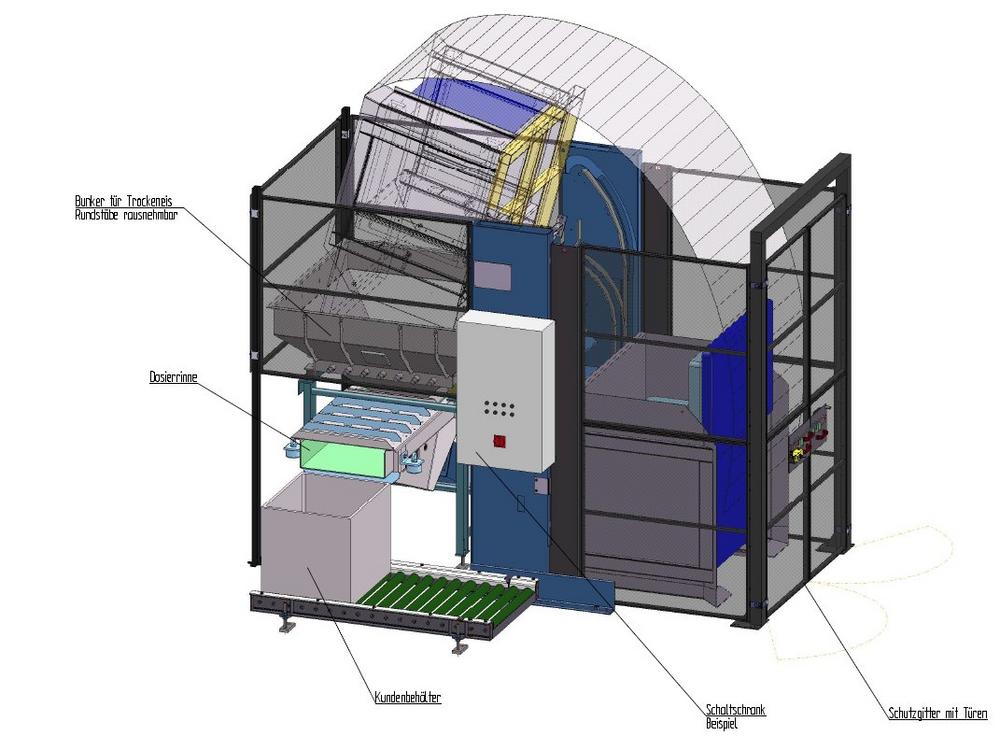 Das neue Trockeneis-Abfüllsystem (Dosiersystem) ist mit sämtlichen ASCO Pelletizern kompatibel und sieht in der Standardausführung zwei Trockeneisproduktionslinien mit Trockeneisdosiereinheiten und einem Fördersystem je nach Kapazitätsanforderungen vor. Dies ermöglicht eine automatisierte Vorbefüllung von (Versand-)Boxen mit frisch produziertem Trockeneis. Im Anschluss werden beispielsweise Impfdosen in die Box gelegt und wiederum automatisiert mit Trockeneis aufgefüllt. Abschliessend muss die Box nur noch versiegelt werden für den Versand.