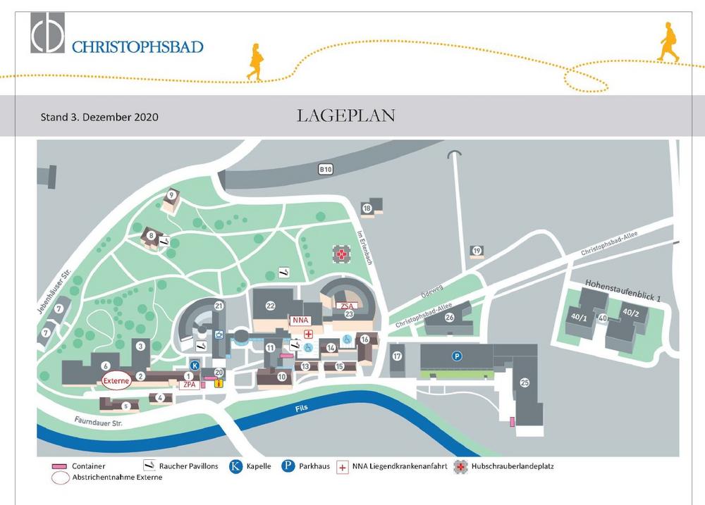 Auf dem Göppinger Campus des Klinikums gibt es drei Abstrichstellen: „Externe“ in Haus 6, Zentrale Psychiatrische Aufnahme in Haus 1 und Neurologische Notaufnahme (NNA) in Haus 22.
