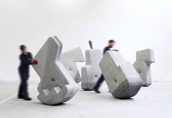 Architekten befassen sich beim Entwerfen von Gebäuden oder beim Erarbeiten städtebaulicher Lösungen mit den wechselseitigen Beziehungen zwischen Gestaltung, Technologie und Material, um das Wissen über das Bauen zu erweitern. So beschäftigt sich das US-amerikanische Büro für Designforschung, Matter Design, mit der ingenieurtechnischen Seite der architektonischen Wunderwerke der Antike, wie den Moai-Statuen auf der Osterinsel oder den gewaltigen Steinmauern der Inka in Cusco, um neue Anwendungen für die Zukunft zu entwickeln. Unter Leitung seines Direktors und Mitbegründers Brandon Clifford hat Matter Design mit Cemex Global R&D, geleitet von Davide Zampini, große und komplexe Bau-Choreografien entwickelt, die Baustoffe ebenso wie den menschlichen Körper in die Konstruktionsprozesse einbeziehen. Aus dieser Zusammenarbeit, in der Wissenschaftler, Ingenieure, Architekten, Anthropologen und Wirtschaftsexperten beteiligt sind, gingen die aus acht Elementen bestehende Walking Assembly hervor, sowie Patty & Jan, ein Paar aus zwei ineinandergreifenden Formen.