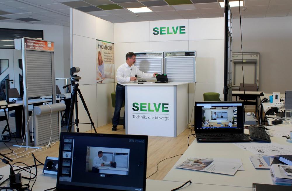 Und so wurden vom 22. bis 25. Februar im Lüdenscheider Studio alle SELVE-Produktneuheiten vorgestellt, ihre Vorteile sowie Funktionen in Echtzeit vorgeführt – und in unzählige Homeoffices, Büros und Werkstätten gestreamt. Auch der von SELVE angebotene tägliche ‚Rundgang‘ erfreute sich großer Beliebtheit, dabei wurde zuerst online der Stand präsentiert, um dann alle Neuheiten der Reihe nach detailliert vorzustellen. Ein pralles Paket an SELVE-Innovationen stand in verschiedenen Kunden- sowie Live-Events im Fokus: Darunter das patentierte Notbediensystem MAN Rescue für motorisierte Rollläden im 2. Flucht- und Rettungsweg, das im Notfall als schnelle wie einfache Lösung in nur zwei Sekunden den Weg nach draußen frei macht. „Bei MAN Rescue waren unsere Live-Vorführungen wie erwartet am meisten gefragt, dazu haben wir noch eine Reihe spontaner Videokonferenzen mit Kunden durchgeführt“, berichtet SELVE-Marketingleiter Alexander Vogt. Das kam bestens an und auch die Möglichkeit, Fragen zu stellen, wurde rege genutzt.