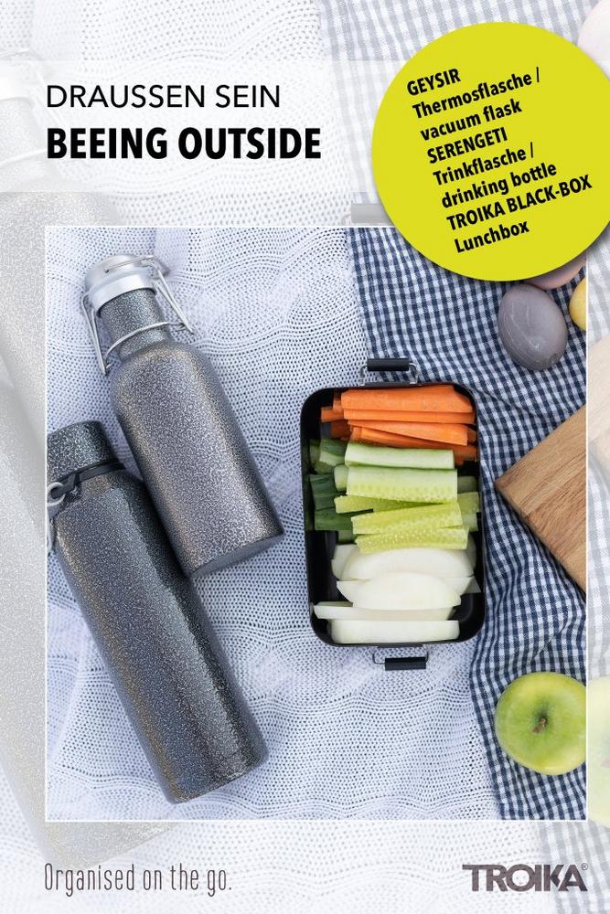 Ob Tafel- oder Mineralwasser oder einfach aus dem Hahn: Der klare, saubere Trinkgenuss erlebt gerade ein erstaunliches Comeback. SERENGETI ist die Flasche zum Trend: ein wunderschönes Stück Nostalgie aus 18/8 Edelstahl und Aluminium, gut zu reinigen und vielfach wiederverwendbar. Mit 600 ml Inhalt genau richtig für unterwegs – nicht zu viel und nicht zu wenig. Und dann das satte Plopp beim Öffnen des Bügelverschlusses – das ist Nostalgie pur. Für Wasser mit und ohne Kohlensäure, lebensmittelecht und LFGB-geprüft.