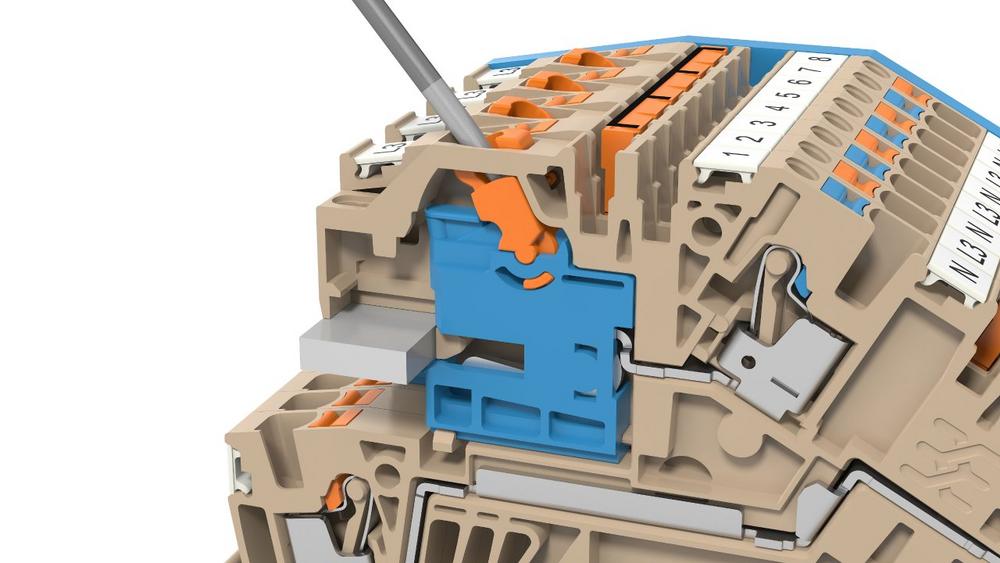 Weidmüller is continuously expanding its product line in this area. The terminal block systems will then be available in various designs, connection options and colours for wire cross-sections from 2.5 mm2 to 16 mm2. Simple feed-through terminal blocks, neutral and PE terminal blocks with and without automatic contacting to the terminal rail, as well as terminal block systems with several wiring levels are planned. With these, an entire electric circuit with all the associated measuring and test options can be accommodated on just one terminal width.