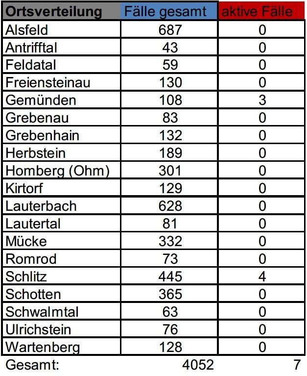 Am Mittwoch meldet das Gesundheitsamt des Vogelsbergkreises keine Neuinfektionen mit SARS-CoV-2.