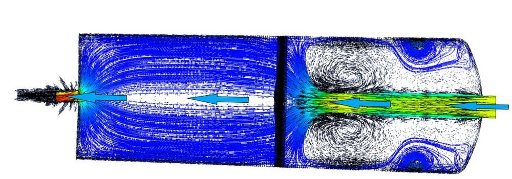 Aus diesem Grund wurden Strömungsanalysen zur Auslegung der Speicher und deren innere Konstruktion mit dem Ziel durchgeführt, bei Umtemperierung im Tank gleichbleibende Strömungsgeschwindigkeiten mit wenigen Verwirbelungen zu erreichen und somit Energieverluste zu reduzieren.