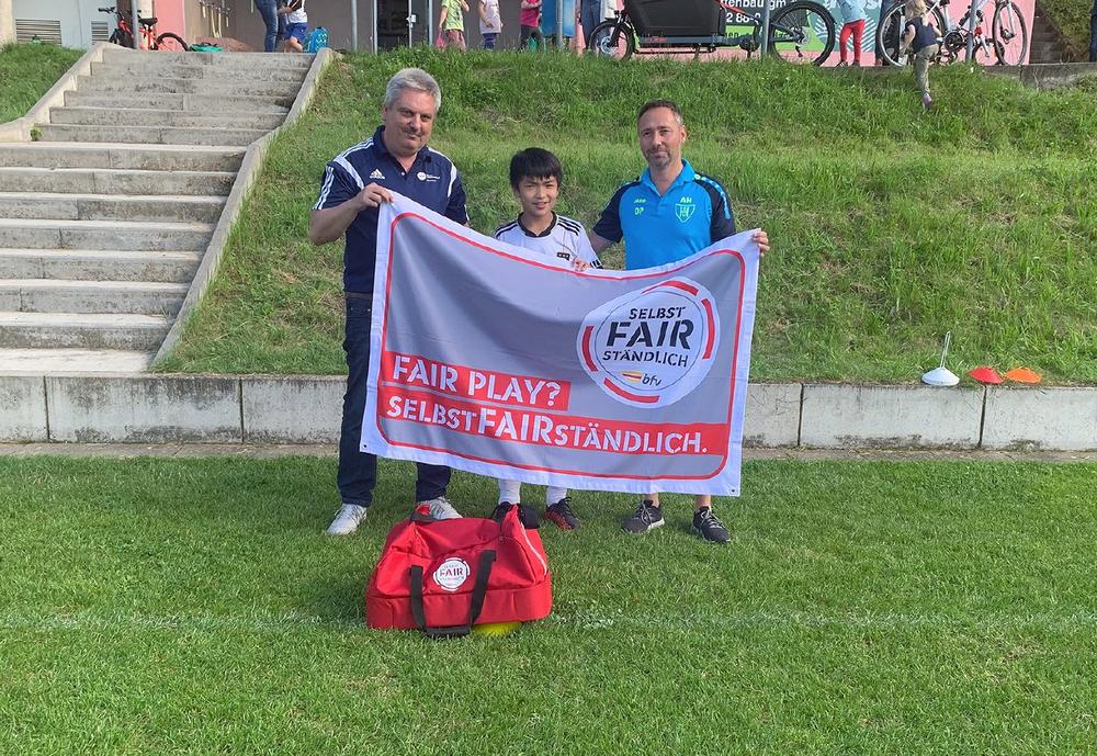 Volker Marschall, Kreisjugendleiter des Fußballkreises Karlsruhe, würdigte gemeinsam mit Vertretern der Jugendleitungen der JSG Karlsruher Bergdörfer sowie dem ehemaligen E-Jugend-Trainer des SV Hohenwettersbach, Dirk Püttner, das faire Verhalten des jungen Spielers. Tin erhielt als Anerkennung eine Adidas-Sporttasche mit Badehandtuch und Trinkflasche überreicht.