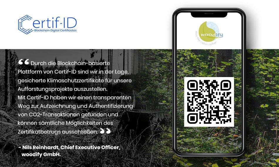 Um den Vorwurf der Zertifikats-Fälschung zu entkräften, hat woodify das Blockchain-basierte System Certif-ID eingeführt. Mit Certif-ID wurde ein transparentes Ökosystem eingeführt, das Klima- und Emissionsdaten sowie den Handel mit CO2-Zertifikaten zurückverfolgt.