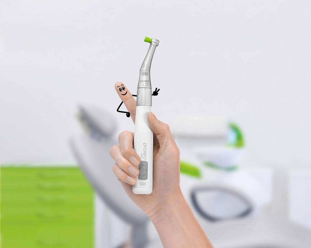 Mit dem Proxeo Twist Cordless-Handstück wechseln Sie Ihre Behandlungsposition nach Bedarf – ohne dabei auf störende Kabel achten zu müssen. Durch geringes Gewicht und ergonomisches Design passt es sich Ihren Bewegungen perfekt an. Das ermöglicht muskelschonendes Polieren und eine rückenfreundliche Haltung.