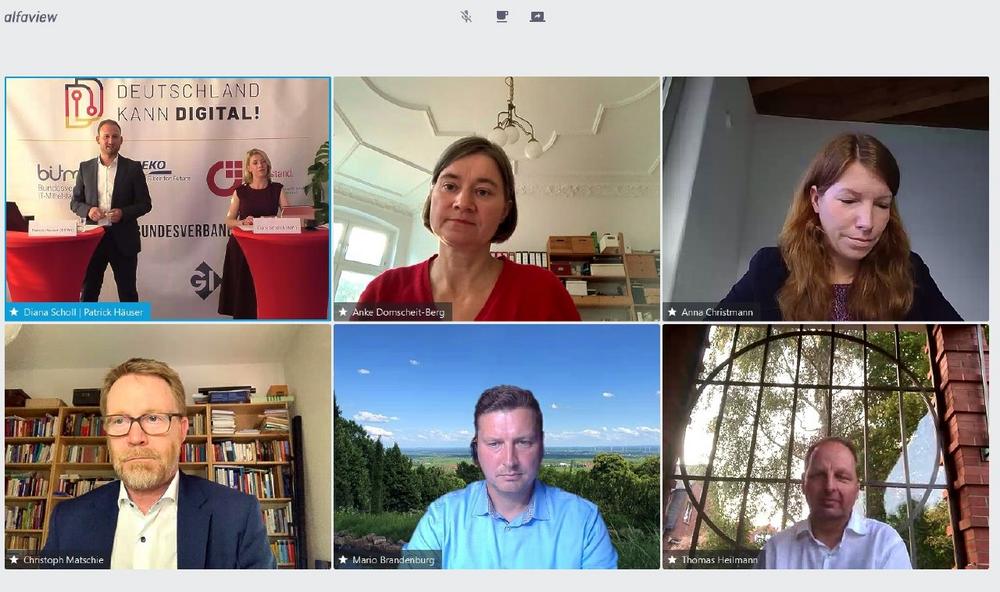 Von Seiten der Politik waren mit Anke Domscheit-Berg (DIE LINKE), Mario Brandenburg (FDP), Christoph Matschie (SPD), Thomas Heilmann (CDU) und Dr. Anna Christmann (Bündnis 90/Die Grünen) Abgeordnete nahezu aller Fraktionen des Bundestags vertreten und diskutierten, wie die Digitalisierung in Zukunft konkret besser und schneller vorangetrieben werden könnte. Thomas Heilmann von der CDU kritisierte, das Hauptproblem der Digitalpolitik liege nicht zwischen den Parteien, sondern zwischen den Digitalpolitikern und den anderen Politikern ihrer eigenen Parteien. „Es ist eine Frage der Ressourcen – wie viel Priorität geben wir dem Thema Digitalisierung eigentlich? Es ist schon besser geworden seit Corona, aber noch lange nicht da, wo es sein muss.“