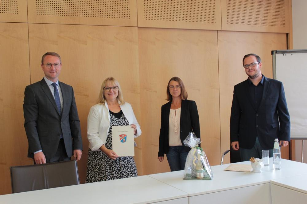 Auch Ulrich Schäfer, Haupt- und Personalamtsleiter, hebt in seinem kurzen Grußwort die lange Zeit, die Eva Stein dem Öffentlichen Dienst gewidmet hat, hervor. Das sei nicht unbedingt Standard und ihr besonders hoch anzurechnen, führt er aus. Gemeinsam mit Ulrike Greb, Personalratsvorsitzende, und der Frauenbeauftragten Elisabeth Lippert überbringt er auch im Namen der gesamten Belegschaft großen Dank, Anerkennung und die besten Wünsche für die Zukunft.