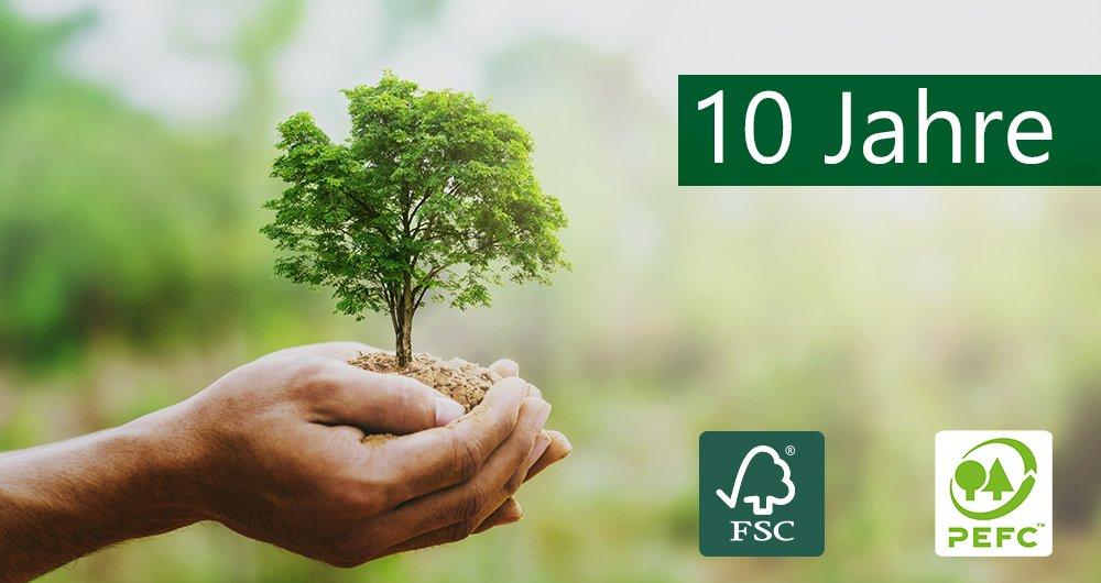 Die Jordan-Holzstandorte in Bünde, Erfurt, Würzburg, Kassel und Nürnberg feiern am 1. November 2021 ihre 10-jährige Zertifizierung. Damit auf dem Endprodukt das FSC-Zeichen oder das PEFC-Label erscheinen darf, müssen alle Stationen der Produktkette, beginnend beim Forstbetrieb bis zum letzten Verarbeitungsschritt, nach den Standards geprüft sein. Hierbei wird unterschieden zwischen Waldzertifikaten, die an die Waldbesitzer ausgestellt werden, und Produktkettenzertifikate, die die Hersteller und Händler erhalten. FSC- oder PEFC-zertifizierte Materialien müssen im Laufe der Verarbeitung bis zum Endprodukt jederzeit identifizierbar sein. Um dies sicherzustellen, müssen alle Betriebe, die innerhalb der Produktkette Materialien weiterverarbeiten, nach den Standards zertifiziert sein. Nur dann kann ein Produkt mit den Labels gekennzeichnet und verkauft werden.