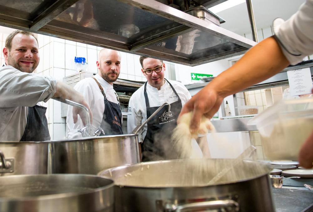 Der Finalabend (12.3.) findet dieses Jahr als „Cooking with Friends“ im Alten Brunnen in Marloffstein statt. Hier zeigen die Erlanger Köche Fritz Striegel jr. (Alter Brunnen), Dominic Polster (Gasthaus Polster) und Zacharias Dengler (Bio-Restaurant Muskat) ihr meisterhaftes Können. Eine Besonderheit ist auch der diesjährige Gastkoch, Christian Kroiß (Restaurant Zeidlmaier). Er bewährte sich bereits in Sternenlokalen wie dem „Tantris“ in München und dem „Vitrum“ des Hotels Ritz-Carlton in Berlin. Zudem belegte er den 3. Platz bei der TV-Kochshow „The Taste“. Mittlerweile führt er den Landgasthof Zeidlmaier südlich von Ingolstadt. Er wird gemeinsam mit den drei Erlanger Köchen kulinarische Meisterwerke zaubern. Der Preis für das 6-Gänge-Menü liegt bei 125,00 €.