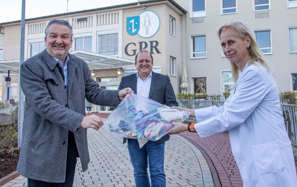 „Seit ich denken kann, strickt meine Mutter das volle Programm. Vor mittlerweile neun Jahren fragte sie mich, wem man denn damit noch etwas Gutes tun könnte und da schlug ich ihr 2010 vor, Babysöckchen für die Neugeborenen im GPR Klinikum zu stricken und seitdem kann ich fast jedes Jahr einen ganzen Korb vorbeibringen. Die Babysöckchen sind in Rüsselsheim mittlerweile so weit verbreitet, dass auch die Nachkommenschaft von ehemals hauptamtlichen Politikern der Stadt "Grode-Söckchen" aus dem GPR trägt“, erklärte Jens Grode schmunzelnd.