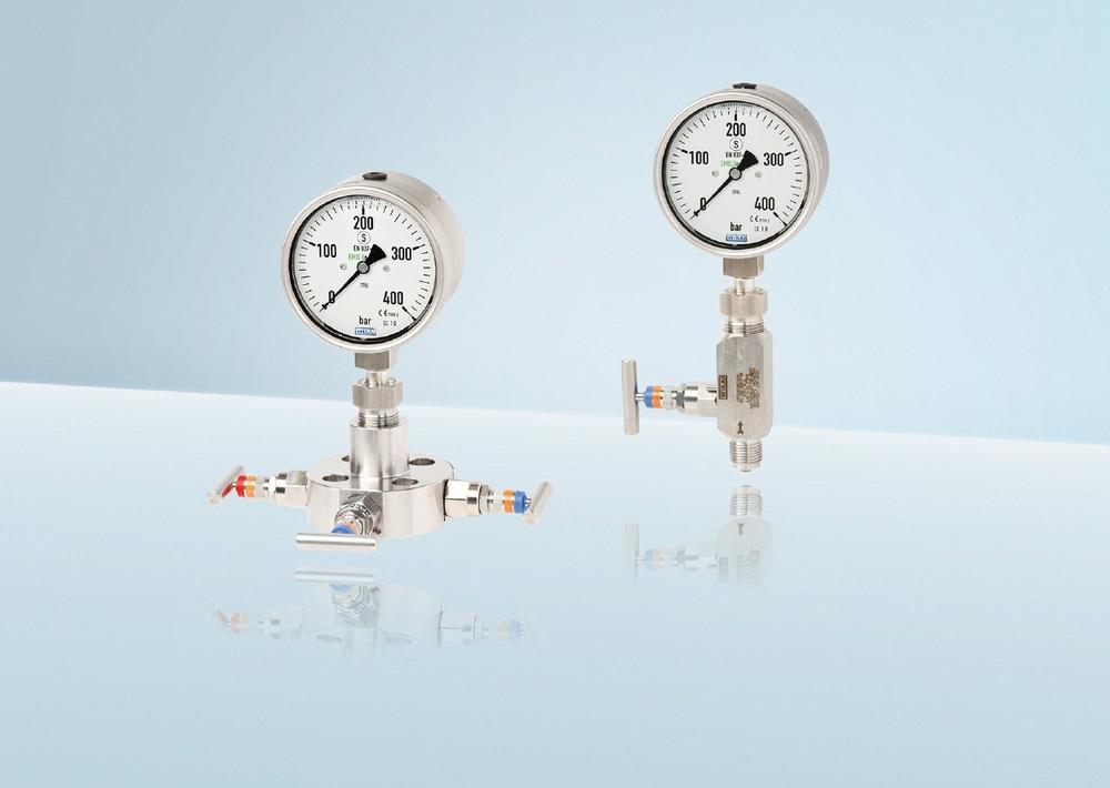 The compact measuring system can be put into operation immediately after delivery. The freely rotating swivel adapter allows 360° positioning of the display and easy dismounting of the measuring instrument, for example, for calibration. The S-3 pressure gauges can be combined with the following valves in fugitive emission design, in accordance with ISO 15848-1 and TA-Luft, to form EMICOgauges: Model IVM monoflange as well as models IV1x and IV2x (block & bleed) needle valves.