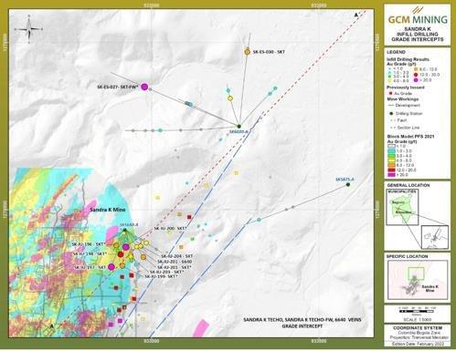 Serafino Iacono, Executive Chairman of GCM Mining, commented, “We completed a very robust exploration campaign at our Segovia Operations in 2021 with a total of approximately 97,000 meters completed in 444 diamond drill holes at our producing mines and our high-priority brownfield targets. These drill results will be incorporated in the annual mineral reserve and resource updates that are expected to be announced later this month. Our Segovia Operations continue to demonstrate their prowess as a world-class system, both in terms of its size and high grades, as shown by the continued outstanding results from the 2021 drilling programs. The team’s exploration model and understanding of the local vein systems led to the discovery of the 1040 Vein at the El Silencio Mine in 2021 which has the potential to add substantial resources and increase the mine life for this operation. Drilling from surface at the Sandra K Mine has proven the down-plunge extension of the main ore-shoots to well below the deepest level of the mine, as well as a further strike extension of the main vein system to the north by 150 meters. In addition, brownfield drilling on the Marmajito Vein has shown multiple high-grade intersections, which reinforce the exploitation potential of this vein by taking advantage of the proximity of the Providencia Mine’s infrastructure. For 2022, we have committed to contining our exploration campaign at Segovia with another 91,000 meters of drilling at our producing mines and high-priority brownfield targets."