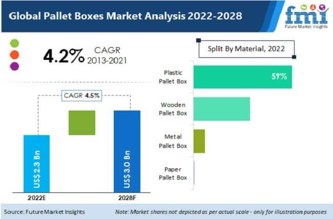Pallet boxes will continue to be attractive in terms of market position in the coming years. Increasing focus towards efficient manufacturing operations will drive the global pallet boxes market during the forecast period 2018-2028.