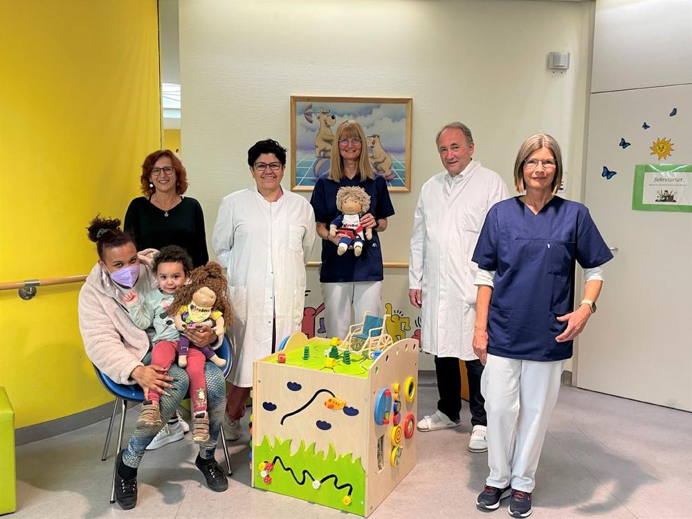 Dr. med. Rolf Ponader, Chefarzt der Klinik für Kinder und Jugendliche ist ebenfalls sehr begeistert von den beiden kleinen Helfern. Ihren Weg ins Klinikum verglich er mit einer Geburt. Von der Idee der Stiftung über die Herstellung bis hin zur Namenstaufe sind fast 10 Monate vergangen.