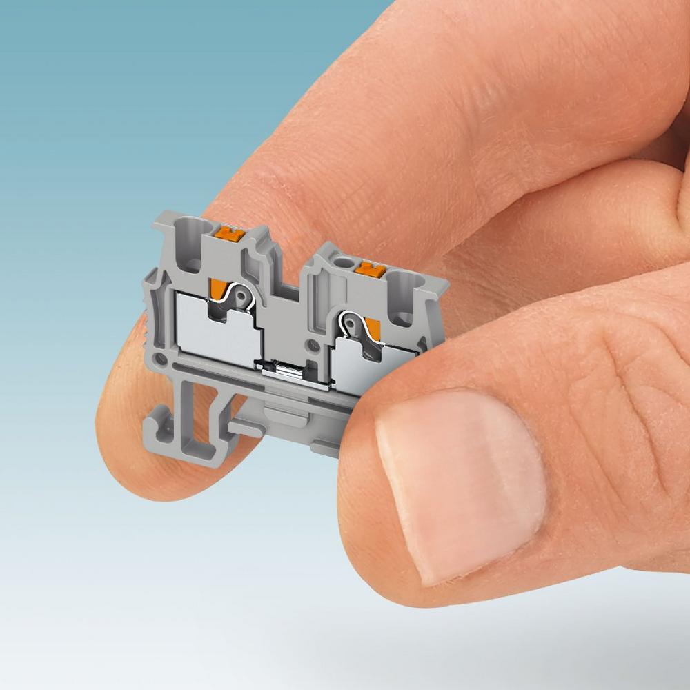 Besonders bei der zunehmenden Miniaturisierung im Maschinen-, Schaltanlagen- und Schaltschrankbau sind die Miniklemmen eine gute Wahl. Trotz ihrer geringen Größe nutzen sie die Vorteile des Clipline complete-Systems, zum Beispiel großflächige Beschriftungsmöglichkeiten aller Klemmstellen,einfache Potenzialverteilung durch standardisierte Steckbrücken oder Prüfzubehör. Die Miniklemmen bieten flexible Montagemöglichkeiten auf der kleinen 15 mm Tragschiene. Steckbare Lösungen sorgen für einen zeitsparenden und modularen Aufbau. Das Portfolio verfügt auch über konturgleiche Schutzleiterklemmen. Diese sind mit dem Zusatz -PE gekennzeichnet und entsprechen den Bestimmungen der Norm IEC 60947-7-2.