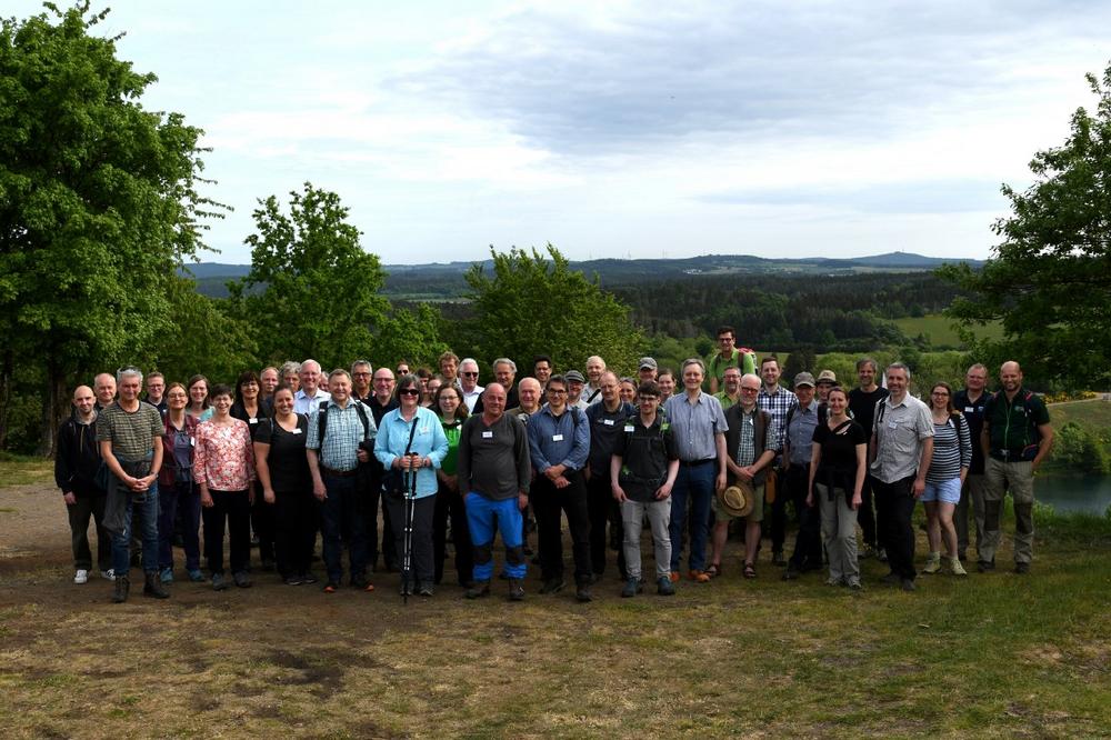 In zwei Exkursionen stellte der Natur- und Geopark Vulkaneifel den Gästen aus den bundesweiten Naturparken seine Arbeit vor: Am Dienstag lernten die Teilnehmer:innen bei einer 3-stündigen Wanderung zu den „Augen der Eifel“ Teile von Eifelsteig, Vulkaneifel-Pfaden, örtlichen Wanderwegen und des Mountainbike-Trailparks Vulkaneifel kennen, die an den Maaren vorbeiführen. Am Weinfelder Maar wurde eine Beweidungsmaßnahme mit Ziegen zur Offenhaltung des Maartrichters vorgestellt. In den Gerolsteiner Dolomiten auf dem Gerolsteiner „Felsenpfad“ waren die Gäste am Mittwoch auf einer 2. Exkursion unterwegs und lernten hier die geologische Entstehungsgeschichte der Vulkaneifel kennen.