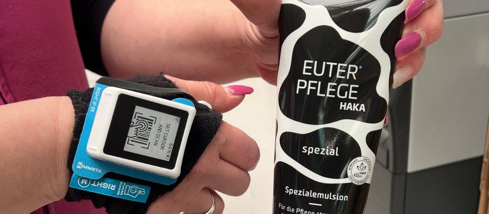 Bei Haka Kunz wird auf dem Display der Kommissionierauftrag angezeigt und nach dem richtigen Einscannen der Barcode. Der HS 50 meldet jeden Scanvorgang akustisch, visuell und haptisch zurück, sodass erst nach der Erfassung des richtigen Barcodes der Pickingprozess fortgeführt werden kann. Damit stellt das Unternehmen sicher, dass immer das richtige Produkt an die KundenInnen verschickt wird. Die Ergonomie ist individuell einstellbar, d.h. die Handstulpen sind für Links- und Rechtshänder in S, M, L und XL verfügbar.