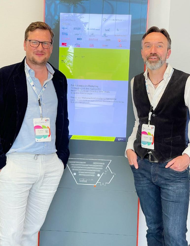 Auch STUDIO 47 war dabei und präsentierte zwei Innovationsprojekte, die während der Corona-Zeit bei Duisburgs regionalem Fernsehsender entwickelt und gestartet wurden. Chefredakteur Sascha Devigne stellte in einem Impulsvortrag das journalistische Einstiegsprogramm „RuhrReporter“ sowie das trimediale Format „Quarta Parete“ vor. In einem Panelgespräch diskutierte er zudem gemeinsam mit Petra Schwegler (MedienNetzwerk Bayern), Lena Schnelle (max neo) und Doris Grau (Antenne Bayern) über neue Ansätze im Recruiting und Auswege aus dem Fachkräftemangel im Medienbereich.