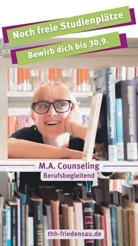 Im Studiengang Counseling werden schwerpunktmäßig Grundlagen für eine Tätigkeit im Bereich Ehe-, Familien- und Lebensberatung vermittelt. Er eignet sich als Weiterbildung im Bereich Sozialarbeit und Sozialpädagogik und anderer helfender Professionen, aber auch als Spezialisierung für seelsorgerliche Dienste in Kirchengemeinden. Das Studium Counseling kann in Friedensau berufsbegleitend belegt werden, als Option für Berufstätige, die ihre beruflichen Kompetenzen erweitern wollen oder einen beruflichen Neustart planen.