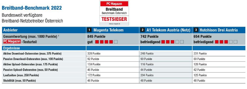 Die Fachzeitschrift PC Magazin hat in Kooperation mit dem Infrastruktur- und Benchmarkingspezialist umlaut, Teil von Accenture, zum vierten Mal in einem umfassenden Breitband-Benchmark die Leistungen der Internetzugänge in den österreichischen Haushalten überprüft. Dabei steht das Interneterlebnis zuhause im Fokus, ganzheitlich und aus Anwendersicht. Untersucht wurden die bundesweit aktiven Netzbetreiber A1 Telekom, Hutchison Drei und Magenta […]