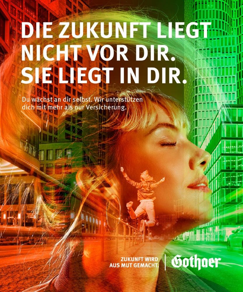 Zur Entwicklung des neuen werblichen Erscheinungsbilds auf Basis der neuen Markenpositionierung wurde ein Kreativ-Pitch mit Marktforschung durchgeführt. Dabei überzeugte die Leitidee sowie das Kreativ-Konzept der Münchner Werbeagentur Berger Baader Hermes (BBH) am stärksten. „Mit dem neuen Kampagnenansatz greifen wir das Thema der aktiven Zukunftsgestaltung auf: Menschen werden in ihren Vorhaben für die Zukunft bestärkt und können diese voller Optimismus und Zuversicht angehen, weil die Gothaer ihnen mit „Mehr als nur Versicherungsschutz“ zur Seite steht,“ erklärt Oliver Brüß, Vorstand Vertrieb und Marketing bei der Gothaer. „Die starke visuelle Kreation zeigt die Menschen und ihre Zukunftsvorstellungen.“