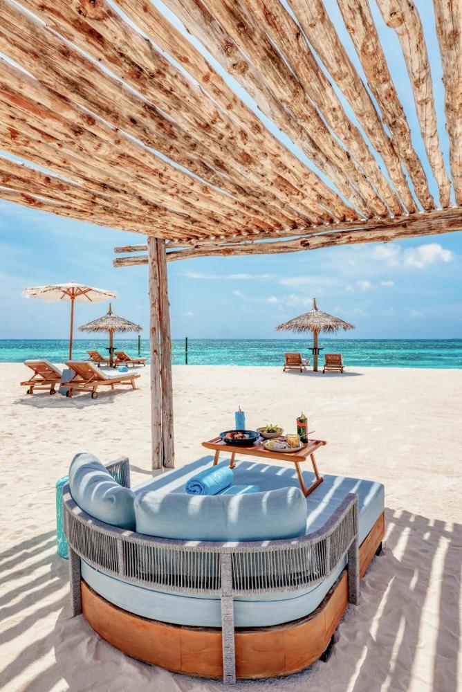 Wohltuend komfortabel ist das Ambiente. Und dabei sehr privat. Bequeme Sonnenliegen verteilen sich im weißen Sand. Sie alle sind gut behütet mit hübschen Sonnenschirmen oder kleinen Strohdächern, die gut vor der Sonne schützen. Filmreif ist der Blick auf den schillernden Ozean. Hudhu Bay ist das ideale Ziel für die Gäste des Resorts, egal ob sie Kajakfahren, sich in der Sonne aalen, einen leichten Lunch direkt am Meer oder köstliche Erfrischungen genießen wollen. Unvergleichlich ist die Atmosphäre auch bei Sonnenuntergang. Hier mit einem Sundowner – magisch. Der Beach Club ist täglich von 11 bis 19 Uhr geöffnet, danach kann er auch für private Feierlichkeiten genutzt werden. Generell ist der Zugang im INDULGENCE™ Plan des Resorts enthalten.