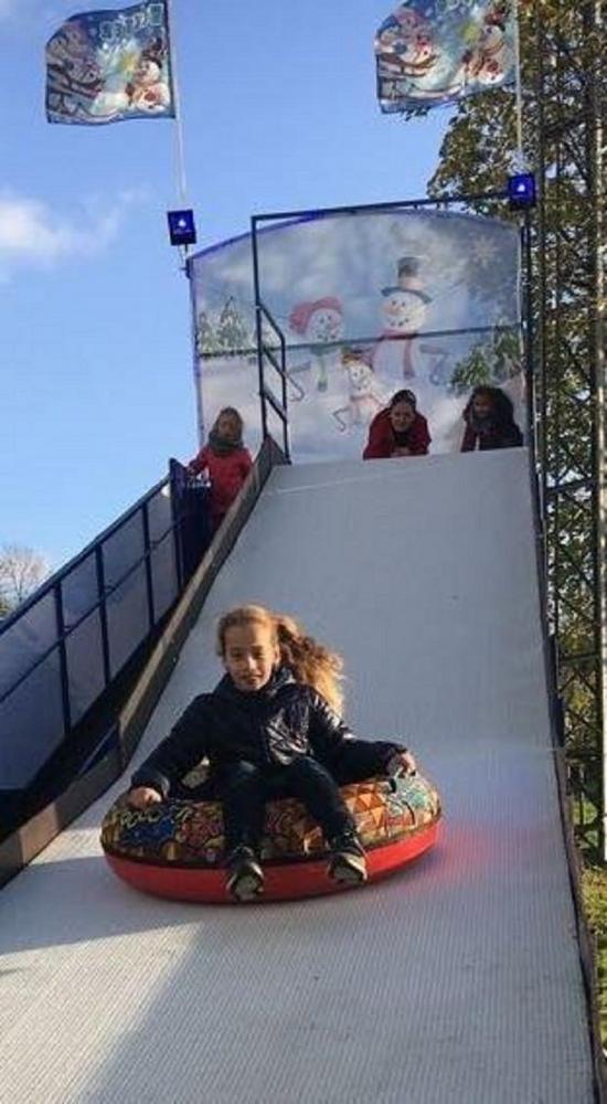 Bei einem Gefälle von bis zu 45 Grad geht es auf aufblasbaren Reifen auf einem speziellen Rollen-Belag bergab. Schwung holen sich die Rodler dann auf einer Länge von 25 m. Die Nutzung der Rodelbahn ist für Kinder und Erwachsene kostenlos.
